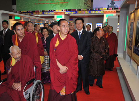 Panchen was shown around the 160 material exhibits and more than 400 pictures. The exhibition is being held in two halls of the Nationalities Cultural Palace.