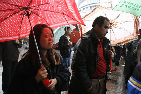 Relatives cry while waiting for news about children who were buried under a collapsed school following an earthquake in Dujiangyan City, 50km (31 miles) from Chengdu in Sichuan province May 13, 2008. [Agencies]
