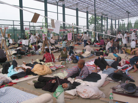 Injured earthquake survivors receive medical treatment at a rescue center in Mianzhu city, one of the worst quake-hit areas in Southwest China's Sichuan Province, May 16, 2008. [chinadaily.com.cn/by Rong Xiandong in Mianzhu]