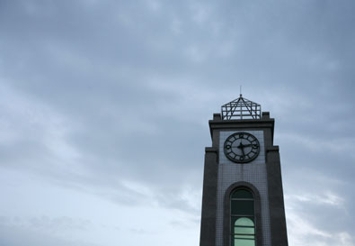 The clock on a tower which stopped at 2:28 pm, the time of a massive 8.0-magnitude earthquake, is seen at sunset in the township of Hanwang in Mianzhu city north of Chengdu in Sichuan Province May 18, 2008. The death toll rose to 32,476 by 2:00pm Sunday. [Agencies]