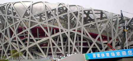 A general view shows the National Olympic Stadium, also known as the Bird's Nest, before the Good Luck Beijing China Athletics Open, an Olympic test event in Beijing May 22, 2008. [chinadaily.com.cn]