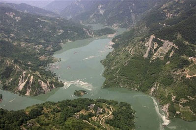 A bird's-eye view of quake lakes formed after the May 12 earthquake in Beichuan County, southwest China's Sichuan Province Thursday, May 22, 2008. [Xinhua]