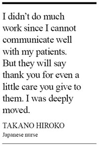Though she cannot speak Chinese, Takano looks after her patients meticulously, working almost 12 hours a day.