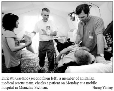 According to the latest statistics, 11 medical teams of 285 medical personnel from Russia, Japan, Italy, German, Britain, France, Cuba, Taiwan, Hong Kong and Macao had arrived in the earthquake-hit areas.