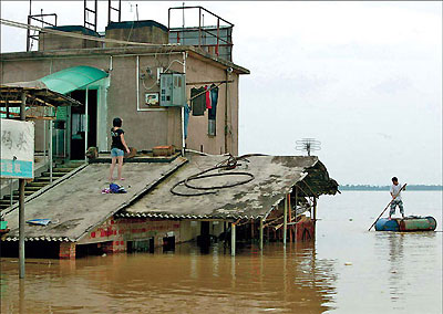 The worst storms and floods in decades have hit about 38.56 million people in 20 provinces, mostly in the south, the Ministry of Civil Affairs said yesterday. About 52 people are missing and 2.2 million hectares of farmland has been inundated, the ministry said. The direct economic loss has reached 26 billion yuan ($3.3 billion). Threat of massive floods along the 5,500-km Yellow River that runs through the north looms large, the China Meteorological Administration (CMA) warned yesterday. Heavy rain in the next few days could "increase the destructive force of floods and make relief and rescue work even more difficult", the CMA said. "National flood prevention and relief efforts are entering a crucial phase" because torrential rain are likely to raise the threat of floods in the lower and middle reaches of the Yellow River in Shanxi, Shaanxi, Henan and Shandong provinces, it said. The Yellow River, China's longest after the Yangtze, has caused massive floods in the past but its devastating effects have not been felt in recent decades. Weather forecasts warn fresh storms could lash parts of the Yangtze River delta and parts of provinces in the east, south and southwest too. Vice-Premier Hui Liangyu said the fight against floods in South China had reached a critical stage. Hui is commander-in-chief of the country's drought- and flood-prevention headquarters too. He told an urgent meeting yesterday that all related departments and local authorities in South China should fully realize the importance of fighting floods this year. Twelve provinces and regions in the south have been lashed by heavy rain since June 7, with some areas experiencing the heaviest rainfall in 100 years. Many rivers are already flowing above the danger levels and have broken their banks at some places in Guangdong province. Many areas along the Xijiang River and the Beijiang River, tributaries of the Pearl River that runs through Guangxi, Hunan and Guangdong provinces, are under water. The flooded Xijiang and Beijiang rivers pose a flood threat at their convergence point in Sanshui, Foshan city, where the water level hit the highest in five decades, Guangdong water resource department said. At noon yesterday, the water level at Makou hydrological station in Sanshui was 8.4 m, almost 1 m above the danger level. A Guangdong water resource department official said 18,000 relief and rescue workers had been mobilized to monitor the flood situation in Sanshui. The floodgates of two dams in Sanshui were opened to discharge water and reduce the threat to the dam, Yue said. About 20 people have been killed and more than 5.76 million affected by the floods in 17 of Guangdong's 21 cities, where food too, is in short supply. According to official estimates, the province has already suffered an economic loss of 3.8 billion yuan ($540 million). Heavy rain is likely to continue in Hunan and Guizhou provinces and the Guangxi Zhuang autonomous region during the next couple of days, the CMA said. Xinhua contributed to the story |