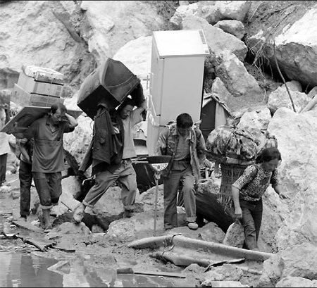 "I didn't want to cause trouble for the authorities, rescuers or myself. I just wanted to be here again to see if there is any hope of finding my son's body," Gao said. His 19-year-old son, who Gao believes is dead, is one of more than 1,000 people listed as missing in the county. Thousands of people every day have been flooding back to Beichuan, via the town of Leigu. After undergoing a brief identity check with police from Liaoning province, they walk the final 7 km to their former homes. Eighty percent of all buildings in Beichuan, located about 100 km east of the quake's epicenter, are now nothing more than rubble. However, people have been keen to return; to retrieve valuables, search for the bodies of family and friends, or simply to pay tribute to those who died. Ravaged by the disaster and flooded with water drained from the Tangjiashan quake lake, most of Beichuan has been left untouched so it can be developed into an earthquake museum, local officials said earlier. The new site for Beichuan, which sources have said will likely be near Bandengqiao, in adjacent Anxian county, is still under discussion. Although quarantined and disinfected over the month it was closed to the outside world, a significant number of people are still buried in the remains of Beichuan, and a sharp, unpleasant odor remains in the air. Many people who returned home to retrieve belongings - mostly furniture and electronic equipment - had friends to help them, others recruited nearby villagers for 600 yuan ($87) a time. A family surnamed Zheng hired a peasant who lived nearby to carry two wardrobes, a television and a washing machine from the debris of their apartment. Others did the work themselves. Some people tried to build a makeshift road out of tree branches so they could drive their recovered vehicles out of the county. But as of yesterday, none had succeeded. Chen Gui, who was buried under but later rescued from the store she owned at a Beichuan shopping mall, said she has no idea how she will get her valuables out. "I'm not sure how I'm going to do it. Maybe I'll just take a couple of bricks or something," she said. Chen's husband's family all died in the quake, but their bodies have not bee found, she said. She said there have been rumors in the town there are still people alive under the debris. On Monday, dark smoke was seen rising from the debris of a collapsed supermarket. Many people thought it might be a signal from someone trapped in the rubble. After more than 10 hours of digging, rescuers found nothing, although when four of them collapsed due to the stench and had to be carried out, some people watching thought they were quake survivors. As of noon yesterday, the death toll from the quake was 69,185, the State Council Information Office said. The number of injured remained unchanged from Sunday's 374,171, while the number of people reported missing fell nine from Tuesday's figure to 18,458. Some 96,207 people have been admitted to hospital, of whom 83,078 have been discharged, the office said. As of Tuesday, 1.47 million people had been evacuated from areas hit by the quake, it said. |