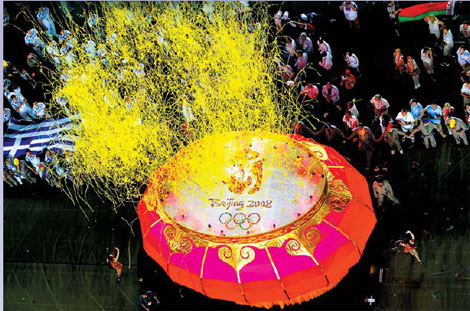 The trio of films that established him in the international arena, Red Sorghum, Ju Dou and Raise the Red Lantern, all made daring use of the color red. It is a symbol of passion - sometimes forbidden passion. In folk culture, it is also celebratory. Many of the ornaments for Chinese holidays, such as banners, lanterns and clothes, accentuate red as the essential element in the color scheme. The burst of colors is found in different ways with different implications in his early and late works. The delirious golden shimmer in Curse of the Golden Flower suggests a mental state of the imperial family and may lead to less-than-positive interpretations. However, there is little possibility Zhang will tone down the color saturation in favor of something such as, say, the Taoist colors of black and white. A Zhang production will not be like a demure watercolor - not a chance for the Olympic gala. A Zhang Yimou production depends heavily on symbols - anything that yells Chinese, from household bric-a-brac to royal ornaments. He has been ridiculed for this predilection. (Sardonic writer Wang Shuo called him a "home designer".) But there is no denying that symbols represent a country more efficiently than a nuanced picture Given the size of the overseas audience, symbols may be the only way to go. So, expect bicycles, pandas, dragons and the whole mascot army. Zhang excels at crowd control. Except for the one who lights up the stadium torch, there is little likelihood that any one person will steal the show. Taking a hint from the Spring Festival gala on CCTV, more than one artist may get the honor to sing the theme song. Geometric formations appear in all of Zhang's stage productions. They can be awe-inspiring, but also lyrical if needed. The dance numbers in Impression Lijiang often feature hundreds of performers. Not everyone likes this kind of group calisthenics or its variations, but it is visually direct and speaks a universal language. Of course, what Zhang concocts will be more artful than what we saw 30 to 40 years ago.