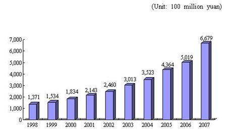 Updated: 2008-07-18 11:20 The State Council Information Office published on Friday, July 18, 2008 a white paper entitled Status Quo of Drug Supervision in China. The document, composed of five chapters, points out that the Chinese government has always attached great importance to supervision over drug safety, and has always been committed to the goal of strengthening such supervision and guaranteeing public drug safety. Status Quo of Drug Supervision in China Drugs are a special kind of commodity used to prevent, treat and diagnose diseases. Effective supervision of drugs has a great bearing on ensuring the safe use of pharmaceuticals by consumers and on safeguarding the right to life and health of the general public. The Chinese government has always attached great importance to supervision over drug safety, and has always been committed to the goal of strengthening such supervision and guaranteeing public drug safety. For this purpose, it has gradually established and improved the system and laws regarding supervision over drug safety, continuously improved the drug supply system, steadily enhanced the guarantee level for the quality and safety of drugs, actively protected the rights and interests of the public in the use of medications, and persistently strived to improve the health of the people. I. Overview of Drug Supply, Quality and Safety The Chinese government is actively creating an open and fair market environment for the development of China's pharmaceutical industry, and vigorously promoting its sustained, rapid and healthy development. Through its unremitting efforts in the past 60 years or so since the founding of the People's Republic of China in 1949, especially in the past 30 years since the adoption of the reform and opening-up policies in 1978, China has not only reversed the situation of inadequacy of medical services and drugs, but also remarkably elevated its guarantee capability regarding the quality and safety of drugs. At present, China can produce 1,500 types of drug substances, many of which lead the world in terms of output, including penicillin and vitamin C. A number of botanic and natural drugs, such as anti-infective berberine and anti-tumor colchicine have been mass-produced and widely used in China. China's antibiotic, vitamin, hormone, antipyretic and analgesic, amino acid, and alkaloid products take up considerable shares of the international pharmaceutical market. China's artemisinin products are used all over the world, significantly contributing to the international anti-malaria efforts. Today, China can produce over one billion doses a year of 41 types of vaccines against infection caused by 26 kinds of viruses and pathogenic bacteria. Among them, the country's annual output of vaccines for preventing common infectious diseases such as hepatitis B, poliomyelitis (infantile paralysis), measles, pertussis, diphtheria and tetanus, can serve 500 million people. Besides meeting the domestic demand, China also provides vaccines to the World Health Organization (WHO) for disease prevention in other countries. China produces more than 3,000 types of medical devices, among which high-tech diagnosis and treatment products such as the digital X-ray, magnetic resonance, ultrasonic and computed tomography apparatus hold considerable market shares. By the end of 2007, China had 12,591 enterprises producing medical devices, and 6,913 pharmaceutical enterprises (including producers of prepared slices of Chinese crude drugs and oxygen for medical use), of which 4,682 were producers of active pharmaceutical ingredients and preparations. Figure 1 Growth of Total Output Value of China's Pharmaceutical Industry (composed of seven sub-industries, at current prices)