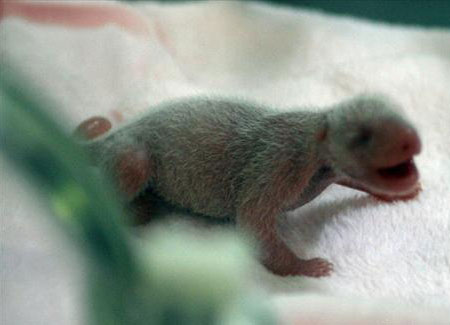 Updated: 2008-07-29 11:23 A newborn panda cub is seen in a baby caring box at the Chengdu Research Base of Giant Panda Breeding in Chengdu, Sichuan province, July 28, 2008. Four giant panda cubs were born within 14 hours at a breeding center in southwest China, a mini baby boom for the rare animals,the Xinhua News Agency reported Sunday. [Asianewsphoto] |