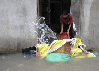 The flood crest of the Xianghe river, the system's main stream, reached 14.19 meters at 6 p.m. on Saturday in Quanjiao, Anhui, 0.2 meters higher than the previous recorded high. The river's flood crest at the Xiaoqiao hydrological station in Jiangsu hit 12.62 meters at 7:33 p.m. Saturday, only one centimeter lower than the historical records. Vice Premier Hui Liangyu has demanded the flood prevention efforts should be underscored to ensure the safety of people, railways and key embankments. The relocations should be properly handled, said Hui, commander-in-chief of the State Flood Control and Drought Relief Headquarters. Downpours swept central Anhui, and central and southern Jiangsu from Thursday to Saturday. The two provinces have put into use overflow areas and evacuated 53,800 people. More than 500,000 people, including 7,900 armed police and militia, are monitoring the levees of the river. Flood control authorities said main streets in Chuzhou city seat was under half a meter of water. The seat of Nanjing, capital of Jiangsu, were also inundated in 65 locations. According to the Anhui Civil Affairs Department, the downpours had killed two people, and the province reported a direct economic loss of 600 million yuan (88 million US dollars). |