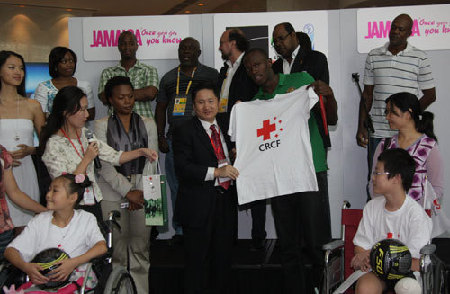 Usain Bolt of Jamaica attends a photocall at the Westin hotel in Beijing as part of the 2008 Beijing Olympic Games on August 23, 2008. Bolt donated US dollars 50,000 to the Red Cross Society of China.[xinhua]