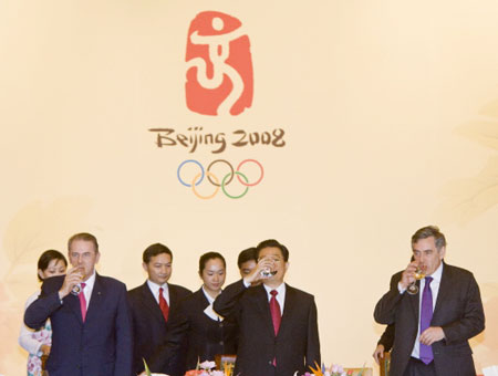 President Hu hosts banquets before Games closing ceremony