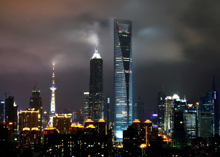 Updated: 2008-08-26 23:51 ![]() Undated file photo of a view of the Shanghai World Financial Center (C) at night in Shanghai. Observation decks on 100th and 97th floors of the 101-storey tower, overlooking the city, are set to be finished and open to the public at the end of this month, providing visitors a spectacular view of downtown Shanghai and the winding Huangpu River. [file]