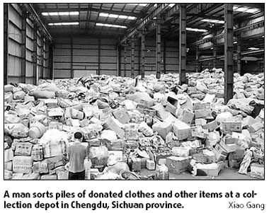 "It has cost us a lot of money to launder and store the clothes, so we decided it would be better just to auction them," she said. The story is similar at the central depot for donated items in Chengdu. Depot chief Zhao Linjiang said about 2.5 million items of secondhand clothing had been received since the earthquake. "Just a week after the quake, we told people to stop sending us secondhand clothes, but they kept on coming," he said. "People would just dump them on the ground and leave. "We received as many clothes in the three months after the quake as we had in the past three years," he said. As well as having to spend 230,000 yuan ($34,000) on additional warehouse space for the clothes, the depot had also invested a lot of money and time on washing and sorting the clothes, Zhao said. Despite the outlay, and the fact that authorities in Qingbai have said they were unable to give away their clothes, Zhao said the depot had compiled a report suggesting 3 million yuan be spent on cleaning and disinfecting about 2 million items of clothing, which could be then distributed to people in quake-hit areas. The report has been sent to the Chengdu bureau of civil affairs for its consideration, he said. The remaining half a million clothing items could be recycled as mattresses and mops at a cost of 1.7 million yuan, Zhao said. Chen Kefu, a spokesman for the provincial department of civil affairs, said several cities across Sichuan had reported growing piles of unwanted clothes and that authorities were considering the best ways to deal with them. Yi Qunya, an official with the Qingbai social affairs bureau, said that any money raised from Saturday's auction will go toward reconstruction projects in the area. She did not say who the likely buyers of the clothes would be, but invited local people to attend the auction in a bid to ensure transparency. |