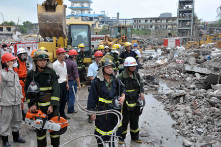 Rescuers used about 14 tons of active carbon in puddles, formed in the process of putting out the fire, to neutralize and absorb the pollutants. They also set up four dams at the pollutant discharging area to prevent the run-off from flowing into the neighbouring Longjiang River. The environment department set up 11 observation points along the river to monitor water quality. As of 8 a.m. on Wednesday, samples taken from the river showed the water was qualified for drinking and the methanol thickness in the nearby village was within standard, according to the regional environment observation center. Besides the dead, four others were missing, while 50 injured were receiving hospital treatment, the rescue headquarters said. Sixteen of those killed were plant workers, while the other two had yet to be identified. The explosions, which first occurred at 6 a.m., persisted until almost 1 p.m. on Tuesday. The fire spread over a 10,000 square meter area, said a firefighter. The blaze was put out by Tuesday evening. Firefighters were still searching for the missing among the debris. About 11,500 people living within 3 km of the plant were evacuated. More than 100 chemical emergency specialists were dispatched to the site to assess the safety situation. Regional work safety authorities were investigating. |