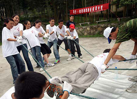 Updated: 2008-08-29 11:37 Students from the quake-hit Pingwu county in Mianyang, southwest China's Sichuan Province, take part in an extended training in Jiujiang, southeast China's Jiangxi Province, Aug. 28, 2008. [Xinhua] |
