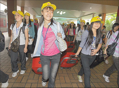 Updated: 2008-09-01 09:21 A group of 1,286 students arrived in Shanghai Sunday from quake-hit Dujiangyan City of Sichuan Province to study in the city's 24 vocational schools.
