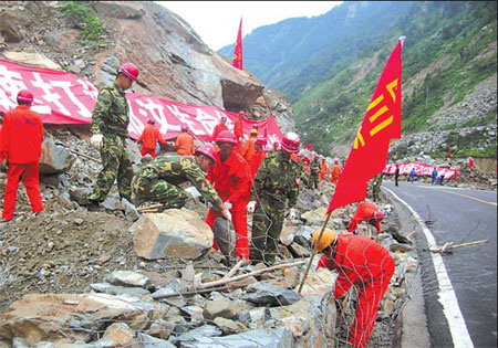 For every kilometer of road, there was an average of 19 landslides, he said. During a visit to Wenchuan Tuesday, Premier Wen Jiabao said: "Some experts said it would take between one and two years to rebuild the highway. I didn't expect it to reopen within 100 days." Because of the damage to the road, relief materials sent from Chengdu to Wenchuan had to go via Ya'an and Ma'erkang, Huang Jinping, general manager of SRCG's bridge construction company, told China Daily. "The detour meant the materials had to travel 700 km instead of 110 km." Between 3,000 and 5,000 people were living and working on the road at any one time, Huang said. Despite the harsh conditions and constant aftershocks, nobody was killed or seriously injured, he said. While meeting journalists Tuesday in the town of Yingxiu in Wenchuan - the epicenter of the May 12 quake - Wen said he was impressed with the spirit of the Sichuan people to succeed in their reconstruction work. The main thing now is to rebuild homes in the quake zone, he said. Also, special attention must be paid to the reconstruction of schools so that parents can feel confident their children will be safe in the future, he said. On Monday, Wen attended the reopening of Beichuan Middle School at a temporary site in the courtyard of a training center in Mianyang. "This is my fourth trip to the school this year. On the first three, I did not smile or ask the number of casualties, for fear it might remind people of their misery," he said. "But this time I was happy to see the children going back to school." Wen said it could take up to three years for people's lives and communities to get back to the levels they were before the quake. While it will be impossible to finish rebuilding all of the homes in the quake zone before winter, people from across the country will be mobilized to donate clothes and quilts to it, the premier said. Meanwhile, the Ministry of Civil Affairs said Tuesday that the central government has allocated 27 million yuan ($4 million) from the central emergency relief fund to help Sichuan and Yunnan provinces recover from the effects of Saturday's 6.1-magnitude earthquake. About 10,000 large tents were sent to affected areas in Yunnan on Monday, while 1,000 larger ones will be sent for use as temporary classrooms, the ministry said. Wang Jian, deputy head of the Panzhihua civil affairs bureau, the city at the epicenter of the quake, said people there are in urgent need of both shelter and fuel. More than 18,000 tents had already been pledged, he said. "But we still need at least 15,000 more and 65,000 quilts to provide temporary shelter for 200,000 people," he said. As of 6 pm Tuesday, the death toll from the quake was 38, with 1.1 million people affected and 392,000 houses damaged, Wang said. Xinhua contributed to the story |
