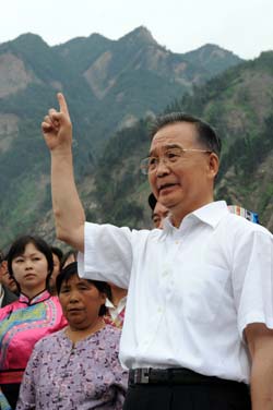 "The relief work so far is successful," said Wen, on his fourth visit to Sichuan since the quake. "Now we are entering a critical stage to boost rehabilitation." With a combination of temporary housing and repaired buildings, about 4.45 million homeless families in the province have found accommodation. Wen visited Zaoshu Village, Qingchuan County, one of the worst-hit areas, as the villagers were busy building or repairing houses. A couple, Shi Guangwu and Zhang Zhengfang, told him that they received a subsidy of 23,000 yuan (US$3,333) from the government to build a new residence. Under a provincial government policy issued in June, rural families who lost their homes will build new ones under government supervision. Each will receive about 20,000 yuan from the government. "I am glad to see farmers in the quake area are busy rebuilding their homes with their own hands. As long as we carefully plan and organize the work, new houses will rise soon," said Wen, who expressed appreciation for their self-reliant attitude.