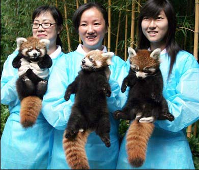Updated: 2008-09-11 10:51 Conservationists in China are celebrating the birth of eight rare Red Panda cubs, including two sets of triplets. The cubs were all born earlier this year at Fuzhou Panda World Research Centre in east China' s Fujian Province.