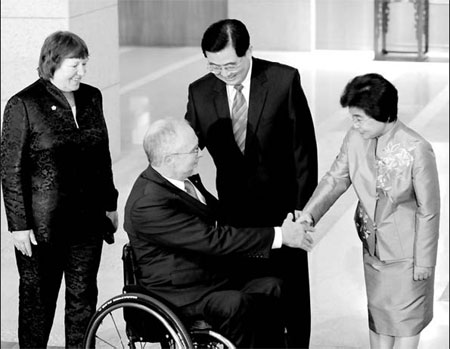 China has kept its word in presenting a special Paralympic Games, President Hu Jintao said while raising a toast to some 30 VIPs from across the world in Beijing yesterday. "The Chinese people have kept the solemn promise made to the international community. They have welcomed guests from across the world with enthusiasm, and presented a special and high-standard Games," Hu said at the Paralympics closing ceremony luncheon. China had promised "Two Games, Equal Splendor" while biding for the 2008 Olympic and Paralympic Games. The dazzling opening ceremony won worldwide praise, and International Paralympic Committee (IPC) President Philip Craven described the "excellent organization" throughout the 12 days of the Paralympics as "first class". "These Games have been a great Games. I think everybody realizes that the two Games have been of equal splendor but with distinguishing features," Craven said at a press conference before he attended the luncheon hosted by Hu. The Chinese people have shared their "success and joy" with people around the world in the process, Hu said. He congratulated athletes of all the teams for their outstanding performance, and promised that China would use this opportunity to better serve the physically challenged people. After the Games, China will move ahead on its path of reform, opening up and peaceful development, he said. "(China) will like to work with other countries to build a nice future." The guests enjoyed their lunch at the same venue, the Diaoyutai State Guesthouse, where the Olympics closing ceremony luncheon was held. Economic deals Later in the day, Hu met with the king of Jordan, Abdullah II, in the Great Hall of the People. The king, in Beijing to attend the closing ceremony, and Hu officiated the signing of several documents of cooperation in economy, technology, energy and resources. Premier Wen Jiabao also signed economic and technology cooperation agreements with Samoa's Prime Minister Tuilaepa Sailele Malielegaoi after a 40-minute meeting. (China Daily 09/18/2008 page2) |
