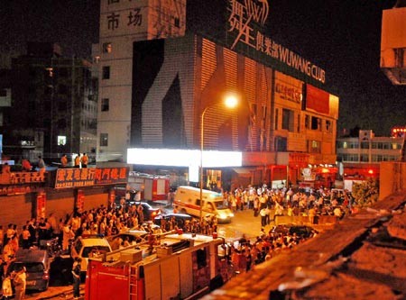 Among those injured, 51 people needed treatment and were being treated in hospital. All were in stable condition, doctors said. The fire broke out at about 11 p.m. at a club, named "King of the Dancers," in Longgang District in Shenzhen City, when hundreds of people were watching a performance. According to police's initial investigation, the fire was triggered by fireworks ignited during the performance on the third floor of the club. There was only a narrow aisle, about 10 meters long, in the hall. Many people got hurt in stampede, said Yang Zhi, a club staff member who survived the fire. "I saw people rushing out at about 11 p.m. and all light were off." Yang wetted his clothes and followed the others. He got burns on the neck. The fire was extinguished at the night. Most of the injured were the audience, police said. The province has set up a special working team for the case. An investigation has begun. |