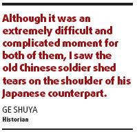 In Nov 1984, Ge, an ambitious graduate from Yunnan Normal University, visited a mausoleum in Tengchong county by sheer chance. He was surprised to see the devastated tombstones of more than 8,000 Chinese and American soldiers who died helping to recover Tengchong from the Japanese. The cemetery was destroyed by Red Guards during the "cultural revolution" (1966-76). As a history major, Ge felt shocked that none of the books he had read mentioned this episode at all. "Tens of thousands of Chinese soldiers lost their lives fighting Japanese, and nobody knew!" He says. "As a rebellious youth, I was determined to probe into that." Ge visited each stop on the Burma Road and interviewed more than 100 witnesses and survivors of World War II. His work has led him to meet quite a few American friends, including John Easterbrook, Joseph Stilwell's grandson, plus "Tex" Hill and Peter Wright, both Flying Tiger pilots. His acquaintances even include Japanese soldiers who fought in the war in Yunnan. In Nov 1991, Ge organized a meeting between Chinese and Japanese veteran soldiers in Kunming. As an old Chinese man related his stories of the war, an old Japanese man couldn't help supporting him with hands, and hugging him. Partly with Ge's help, the stories of brave Chinese Kuomintang soldiers fighting in World War II are widely reported. Today, old Chinese expatriates, American and Japanese veterans, as well as journalists, have revisited the former sites of Stilwell Road. "Each section of the road, each mountain peak, wood or stream, could tell a shocking and weepy story," says Ge. "Most people who lived or fought here have passed away. But the intrepidity of our fathers' generation at the Road is an epitome of the indomitable spirit of the Chinese in difficult times. That spirit will live forever."
