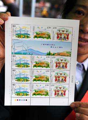 Commemorative stamps issued for founding anniversay of Ningxia