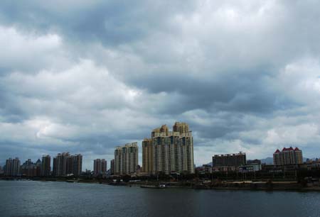 Updated: 2008-09-24 16:33 Dark clouds are seen over the sky in Fuzhou, capital of East China's Fujian Province, Sept. 23, 2008. The Fujian Meteorological Station issued a yellow signal for typhoon early Tuesday, warning the central and southern coastal area of Fujian against the outer rim of Hagupit. [Xinhua] |