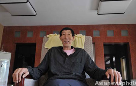 Updated: 2008-09-27 15:14 ![]() Chinese Bao Xishun, 2.36m tall, is seen at their home in Zunhua, north China's Hebei province on September 26, 2008. The couple got married last year, and Xia Shujuan is pregnant now and is expected to give birth around the upcoming national holiday. [Asianewsphoto] |