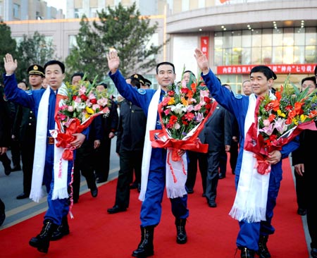 Chinese astronauts back to Beijing