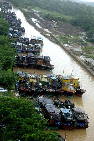 Updated: 2008-10-04 21:35 ![]() Fishing boats are seen at a harbor of Wenchang, South China's Hainan Province, October 4, 2008. Tropical storm Higos leaves Hainan and will make landfall in Guangdong Province on Saturday evening. Higos landed at 10:15 p.m. in Longlou Town of Wenchang City on Friday evening.[Xinhua]