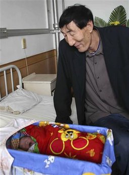 Bao's son measured 22 inches long at birth, the senior doctor at Zunhua Hospital in Hebei province told Reuters. Although slightly taller than average for newborn children, Bao's boy came up well short of the 29.5 inches claimed as a record birth length last year, also in China. "Bao is quite happy. The baby is healthy and a normal size," the hospital's senior doctor Zhang said. Bao, a 7-foot-9-inch herdsman from Inner Mongolia, last year married Xia Shujuan, a pygmy by contrast at 5-foot-6 inches. "I hope he or she can be about 2 meters tall," Bao, 57, said last year about his wishes for a child. "Then he or she can play basketball." Bao briefly lost his Guinness World Records title as the tallest man to Ukrainian Leonid Stadnyk but regained it in August when Stadnyk refused to be measured under new guidelines. Bao's son was born on Thursday. The former goat herder hires himself out for publicity stunts and his wedding last year was sponsored by at least 15 companies. |
