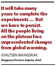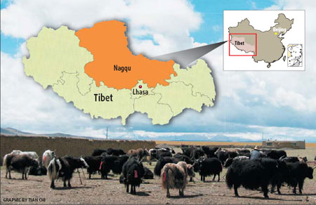"If the rain continues, it will result in a severe shortage of fuel for herders," said Tenzin Dondrup, deputy director of the Tibet Meteorological Bureau. Winter on the Qinghai-Tibet plateau is particularly cold. What makes Tenzin even more worried is that there will be more snowstorms this winter. In past years, such as in 1998, more rainfall in the spring and summer has meant more snowstorms in winter, he said. "I am very nervous about heavy snowstorms hitting the plateau this coming winter, especially when the herders have not prepared enough fuel, such as dried yak dung," he added. According to the figures from Tibet Meteorological Bureau, the temperature on the plateau has risen 0.25 C every decade, about three times the global rate of temperature rising. In Nagqu, the annual average temperature has risen by 0.6-1.5 C over the past 40 years. Annual precipitation has doubled from 78mm to 150mm over the same period, according to local weather records. With an average altitude of 4,500m above sea level, Nagqu in northern Tibet is dubbed "the ridge of the roof of the world". Covering 446,000 sq km, the prefecture accounts for 37 percent of the autonomous region's territory. Nagqu has the largest pastoral area, and the highest productivity in the region. Breeding livestock accounts for 70 percent of the prefecture's gross domestic product, and more than 90 percent of Nagqu residents make a living at it. It accounts for one-third of the region's animal husbandry. But a chilly winter with fuel shortages and snowstorms are not the only consequences of global warming in this region. Flooding has also become a major threat. After the Arctic and Antarctic, the Qinghai-Tibet plateau has the third largest number of glaciers. However, in the past 50 years, 82 percent of the plateau's glaciers have melted. The plateau has lost 10 percent of its permafrost layer in the past decade, according to the Chinese Academy of Sciences.
