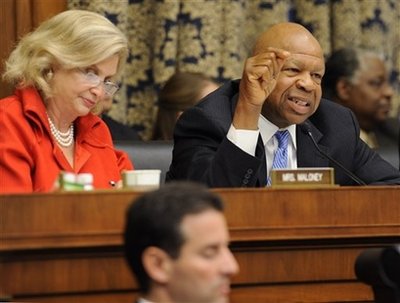 Updated: 2008-10-07 12:51 ![]() Rep. Elijah Cummings, D-Md., right, asks a question of Lehman Brothers Holdings Inc. Chief Executive Richard S. Fuld Jr., during a House Oversight and Government Reform Committee on Capitol Hill in Washington, Monday, Oct. 6, 2008, on the collapse of Lehman Brothers. Also attending the hearing is Rep. Carolyn Maloney, D-N.Y., left, and Rep. John Sarbanes, D-Md., lower front. [Agencies] |