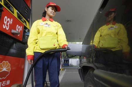 Updated: 2008-10-07 16:42 ![]() A station attendant fills up a car at a PetroChina gas station in Beijing October 7, 2008. Beijing raised the prices of refined oil products by up to 4 percent on Tuesday to cover the cost of cleaner fuel. [Agencies] |