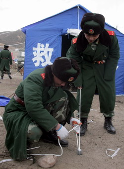 PLA troops stationed in Lhasa were reportedly among the first to arrive after the quake. They helped people out of the ruins, pulled out dead bodies and visited every family to check on survivors and gather information on the missing. Similarly, the regional government is carrying out an emergency response plan and at least 700 rescuers using life detection devices are at the quake zone. Troops and rescue dogs are also searching the rubble for those who may be trapped, while health workers have been deployed to examine villagers and prevent epidemics from breaking out in the area. Tents, food and water are now being trucked in to the villages hit by the earthquake, after rescuers opened a main road Tuesday. Food, drinking water and quilt supplies for victims are currently adequate, Xinhua reported. With at least 191 houses collapsed from the quake, rescuers started building makeshift homes for residents Tuesday morning. "We have finished putting up 280 tents to accommodate all 171 families whose houses collapsed in Yangyi village," said Yang Lin, Damxung's deputy head. Almost every home in Gedar town, which stands 4,560 m above sea level, suffered cracks from the quake. Ensuring that the town's 4,000 people are kept warm was a priority, said an official with the county's Civil Affairs Bureau. The Tibet Division of the Chinese People's Armed Police Force (PAPF) has also sent a detachment of 300 to Damxung county to set up tents to ensure that all of the homeless villagers are sheltered as soon as possible, officials said. In addition, the PAPF headquarters have reportedly ordered its units in Tibet to closely monitor the situation in the region and to spare no efforts to rescue affected people. Another 20 residential buildings were destroyed in neighboring Nyemo county, but no casualties were reported. The Sichuan-Tibet highway was also reopened Tuesday after three days of closure due to falling rocks. "The highway was not damaged by the earthquake, but we are ready for any potential accidents," said Xiang Mingqing, an officer with the People's Armed Police exercising traffic control. The major Qinghai-Tibet railway and Lhasa's airport have maintained normal operations following the quake, while historic structures such as the Potala Palace have reportedly not been affected. Still, the regional earthquake-monitoring network said it had observed 1,211 aftershocks as of 10 am Tuesday, including one above 6.0 on the Richter scale. China Daily-Xinhua |