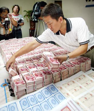Updated: 2008-10-09 00:05 ![]() Taiwan police officers show the media the collection of counterfeit bills they confiscated from a criminal organization in the Gaoping Region of China’s Taiwan Province, Oct. 5, 2008. Taiwan police and the local Procuratorate cracked down a criminal gang making counterfeit money and seized over 100 million fake Renminbi notes. [CFP]