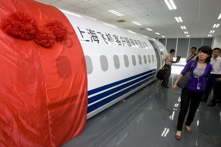 Updated: 2008-10-09 09:20 SHANGHAI: The Commercial Aircraft Corporation of China Ltd (CACC) opened its service center in this city on Tuesday, as China's home-made aircraft ARJ21 is ready for test flights. Known as the Shanghai Aircraft Customer Service Co Ltd, it is located in the Zizhu Science Industrial Park in Minhang district. The center will provide aircraft maintenance and repairs, pilot training, aviation equipment, leasing and consultation. Earlier this year, CACC announced it would be manufacturing aircraft with a take-off weight of more than 100 tons and capable of accommodating more than 150 seats.