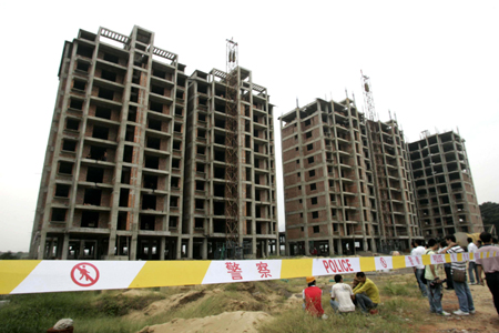 Updated: 2008-10-09 15:57 ![]() People watch the illegal buildings before they are demolished in Wufeng village of Fuzhou, capital of East China's Fujian Province, October 8, 2008. Ten residential towers built with illegally raised fund and without government approval will be torned down in Wufeng village. [CFP] |