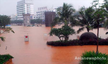 Floods also submerged 157 villages and inundated about 12,000 hectares of crops in the low-lying areas, said Yang Yunxian of the Hainan provincial flood-control headquarters. "Downpours have pounded most parts of the island since Saturday, making several major rivers swell and 425 reservoirs overflow. The rainfall reached 485.8 mm in some areas." Citizens had to wade across flooded streets in the provincial capital Haikou and many other cities, he said. "Traffic was hampered and vegetable prices went up, bringing difficulty to the daily lives of citizens." The provincial government sent relief teams to different disaster-stricken areas. |