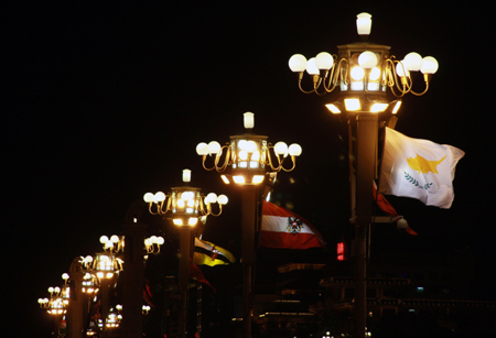 Flags of countries participating the seventh Asia-Europe Meeting (ASEM7) flutter from lamp posts at the Tian'anmen Square in central Beijing, October 23, 2008. The seventh ASEM summit will be held from Oct. 24 to 25 in Beijing, drawing leaders and delegates from 45 Asian and European countries and organizations. [Xinhua] |