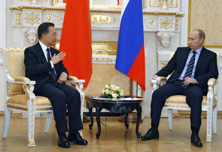 It's necessary for China and Russia to join hands and strengthen bilateral ties as well as economic and trade cooperation under the context of changing international situation and fast growing economies of the two countries, said Wen. Putin said that the Russia-China economic cooperation is based on common interests and has reached an unprecedented high level, which will also benefit the two peoples. He suggested the two countries to further cooperation in the fields of trade, investment, machinery and electric products, energy, science and innovation, agriculture and infrastructural construction.