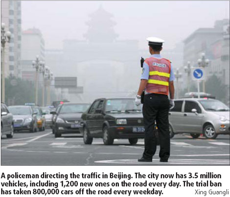Prof Zhang Ming, of Renmin University, is less understanding and strongly opposes the ban on private cars. "Some small business people depend on their cars to make a living and a day without their car will cause a loss of income," he says. Zhang suggests that more government-owned cars be banned. "The government has a lot to do to improve Beijing's air and traffic," he says, "but one thing it shouldn't do is ban private cars from the road." He also fears the government might in future apply the same logic - personal sacrifice for the good of the majority - in other areas of life. As for distressed mother Zhang Ximan, she says: "I don't know how long I can put up with all this inconvenience. Isn't there anything else the government can do to improve the air and traffic?" She is now considering circumventing the ban by doing something available to very few Beijingers. Having made a fortune as a developer in the real estate industry during the boom, she is now thinking of ... buying a third car. ![]()