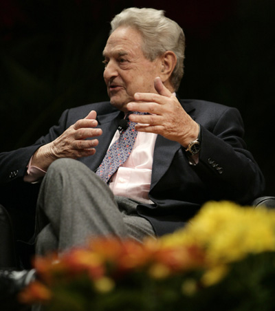 Chairman of Soros Fund Managment George Soros speaks at the Massachusetts Institute of Technology during a conversation about "The new paradigm for financial markets" in Cambridge, Massachusetts October 28, 2008. Soros expects the global financial crisis to reduce the hedge fund industry to as little as one-third of its current size, he said on Tuesday. [Agencies]