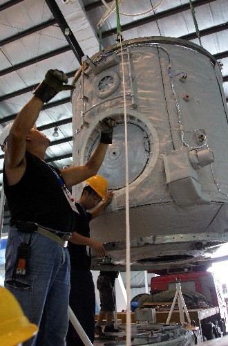 Module of Shenzhou VII gets ready for exhibition