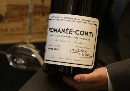 Updated: 2008-11-12 17:07 ![]() A jeroboam of 1990 DRC Romanee-Conti is shown at a news conference ahead of an Acker Merrall & Condit wine auction in Hong Kong, South China, November 12, 2008. The jeroboam is expected to fetch between $50,000 and $70,000 in the auction to be held in the country on November 15, 2008. [Agencies]