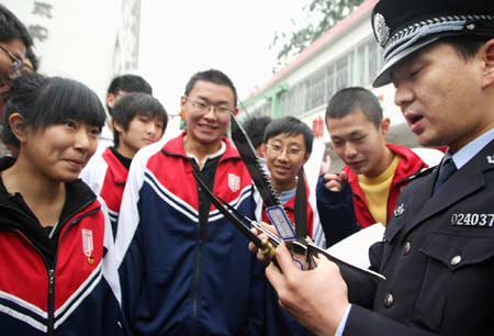 As of Wednesday, students across the city are prohibited from carrying "dangerous" knives on campus, it said. The Ministry of Public Security earlier defined dangerous knives as those that have a point with an angle of less than 60 degrees (regardless of length), and all blades longer than 12 cm. It is already a crime to carry a sharp knife in public, and anyone caught doing so faces 10 days' detention and a 500-yuan ($75) fine. However, the rule was never rigorously enforced in schools. Education departments are cooperating with police on the month-long campaign, the newspaper said. Students carrying knives on campus, or attempting to sell them, will be fined or even detained, it said. To promote the campaign, police on Wednesday held an exhibition of assorted weapons and photographs of victims of knife attacks at the Beijing Practical Arts School. High school student Zhao Huan told China Daily Thursday that some of his classmates carry knives. "They think it's manly," he said. However, police officer Liu Zhiguo said it is dangerous for young people to carry knives, as they might become overexcited in an argument and resort to using them, the report said. Several knife crimes linked to schools have made the news in recent months. On Oct 28, a student stabbed to death a professor at China University of Political Science and Law as he was preparing for a class. |