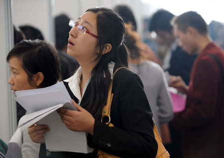 Updated: 2008-11-16 21:51 ![]() A job seeker looks for information at the job fair for medicine graduates in Nanjing, capital of east China's Jiangsu Province, November 15, 2008. A job fair kicked off here on Saturday with over 5,000 job vacancies provided by more than 100 enterprises. [Xinhua]
