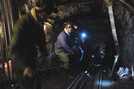 Updated: 2008-11-18 00:22 Rescuers race against time to search and rescue miners trapped in a flooded Gaomendong coal mineons, Pingdingshan City, Central China's Henan Province, November 17, 2008. 34 people were trapped in this coal mine that flooded early Monday morning. [Xinhua] |